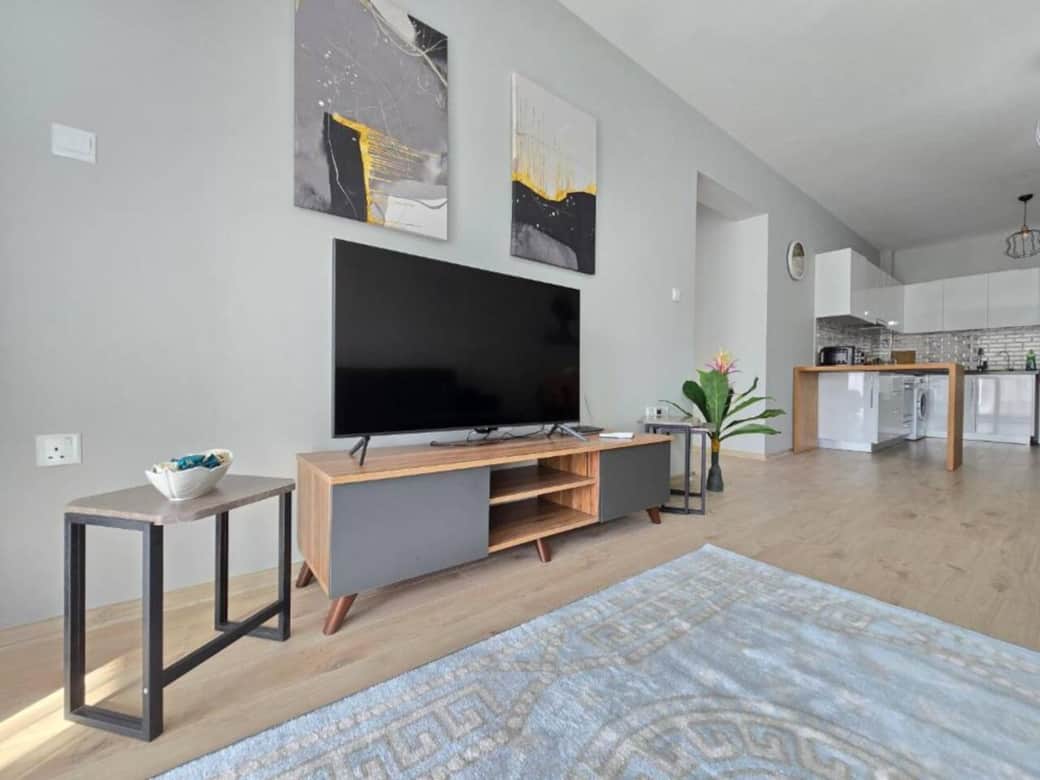 This cozy one-bedroom apartment is located in the Caesar Resort complex. It features a spacious enclosed balcony overlooking the entire infrastructure: outdoor and indoor pools, a courtyard, shops, restaurants, and a gym. The apartment is fully equipped with a kitchen, all necessary amenities, and a smart TV.
